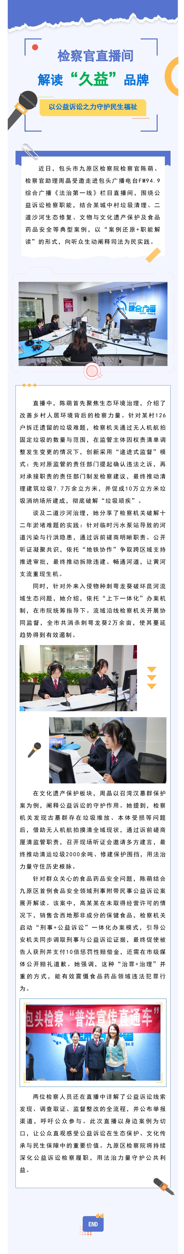 【益民行】检察官直播间解读“久益”品牌:以公益诉讼之力守护民生福祉