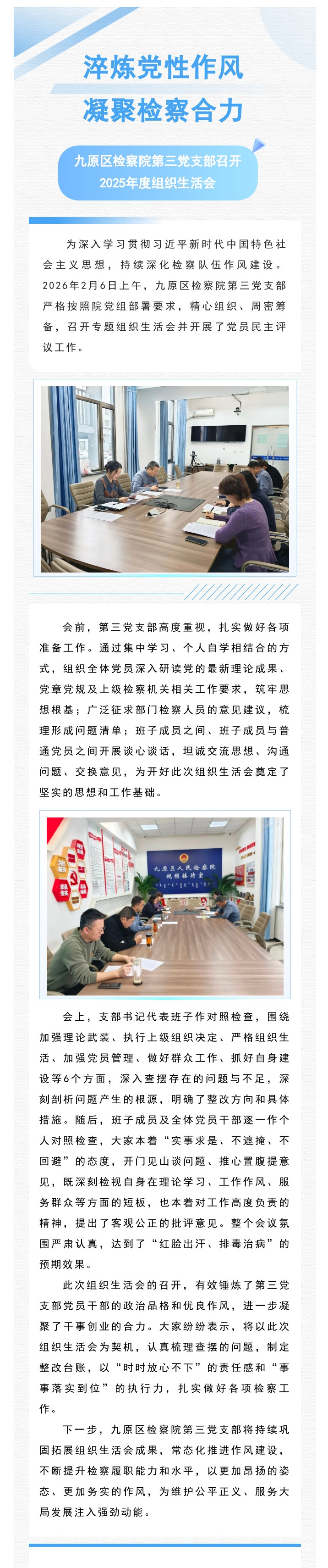 淬炼党性作风 凝聚检察合力——九原区检察院第三党支部召开2025年度组织生活会