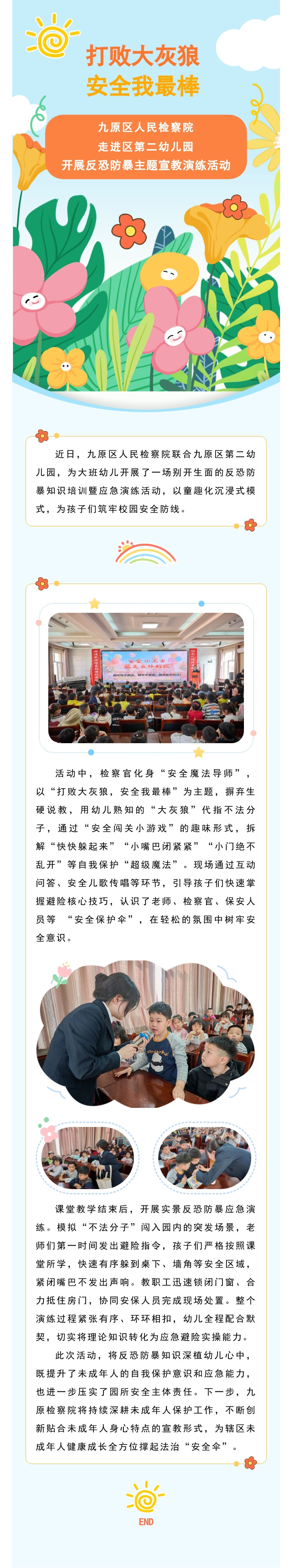 “打败大灰狼 安全我最棒”—— 九原区人民检察院走进区第二幼儿园开展反恐防暴主题宣教演练活动