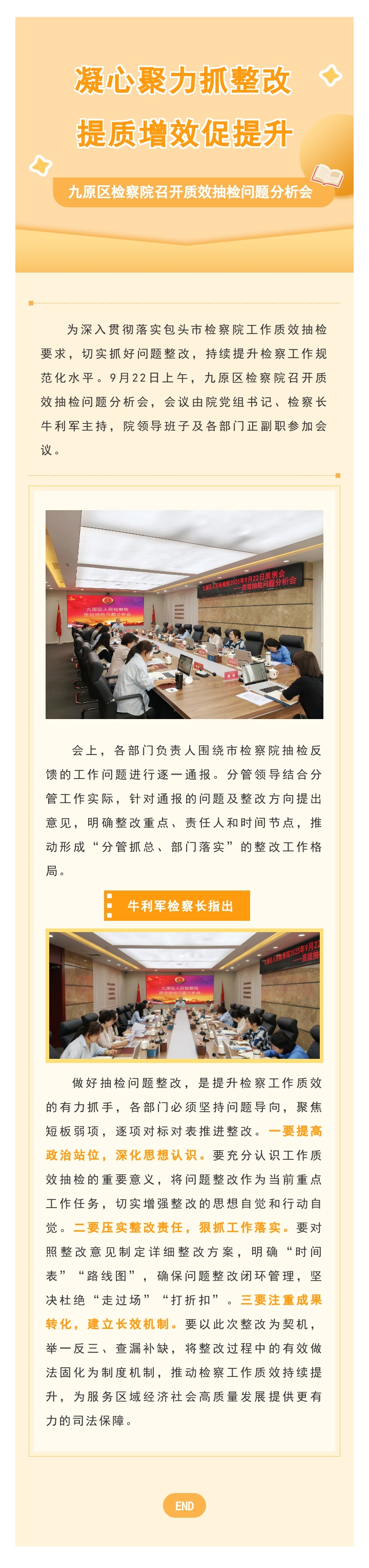 凝心聚力抓整改 标本兼治促精进——九原区检察院召开质效抽检问题分析会