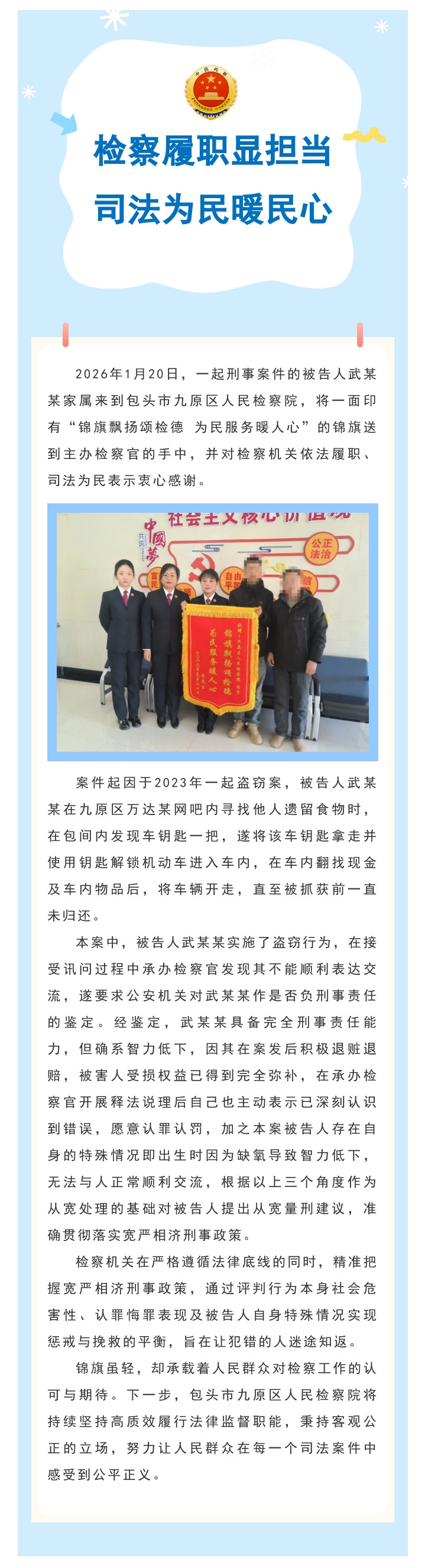 检察履职显担当,司法为民暖民心