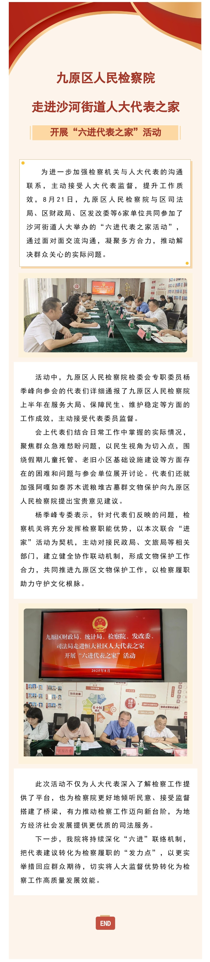 九原区人民检察院走进沙河街道人大代表之家开展“六进代表之家”活动