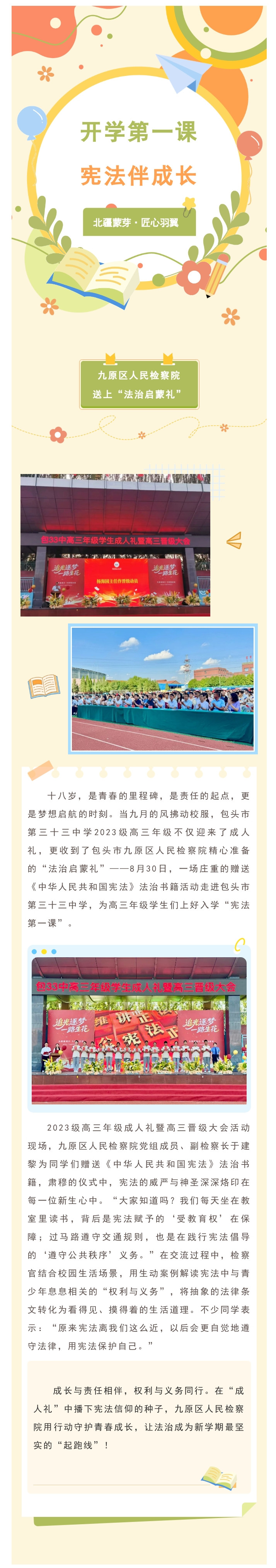 【北疆蒙芽·匠心羽翼】开学第一课,宪法伴成长!九原区人民检察院送上“法治启蒙礼”
