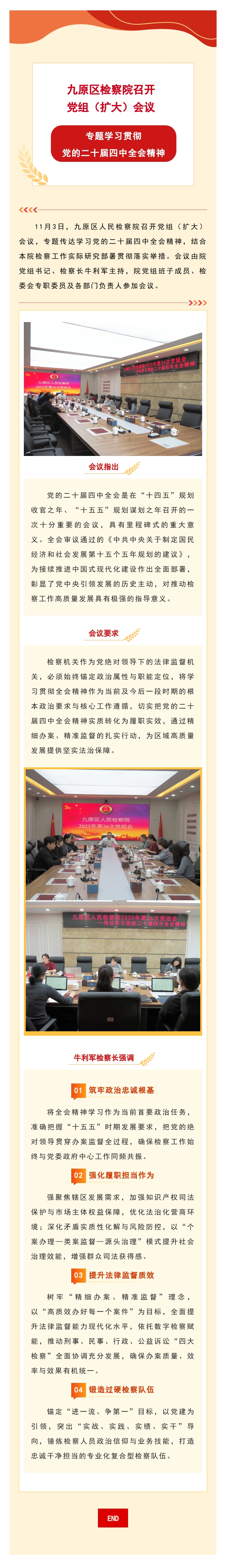 九原区检察院召开党组(扩大)会议专题学习贯彻党的二十届四中全会精神