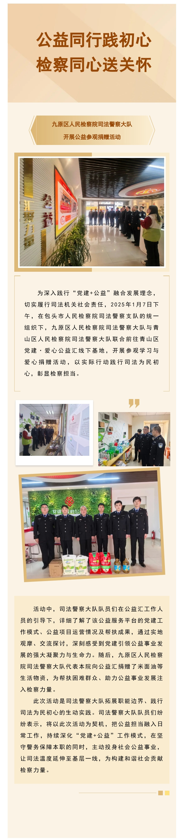 公益同行践初心 检察同心送关怀——九原区人民检察院司法警察大队开展公益参观捐赠活动