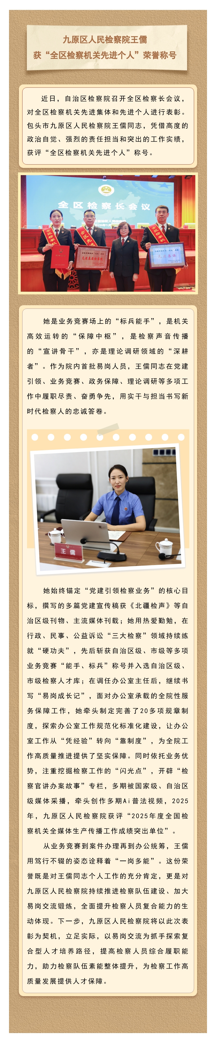 载誉前行铸匠心|九原区人民检察院王儒获“全区检察机关先进个人”荣誉称号