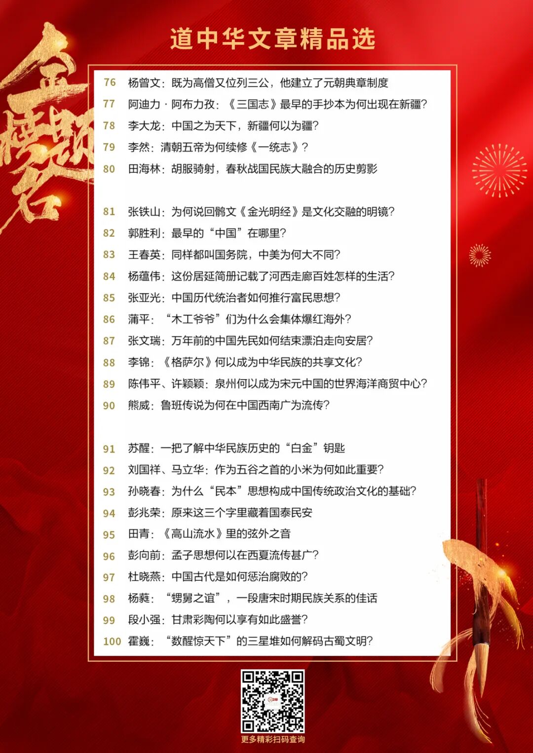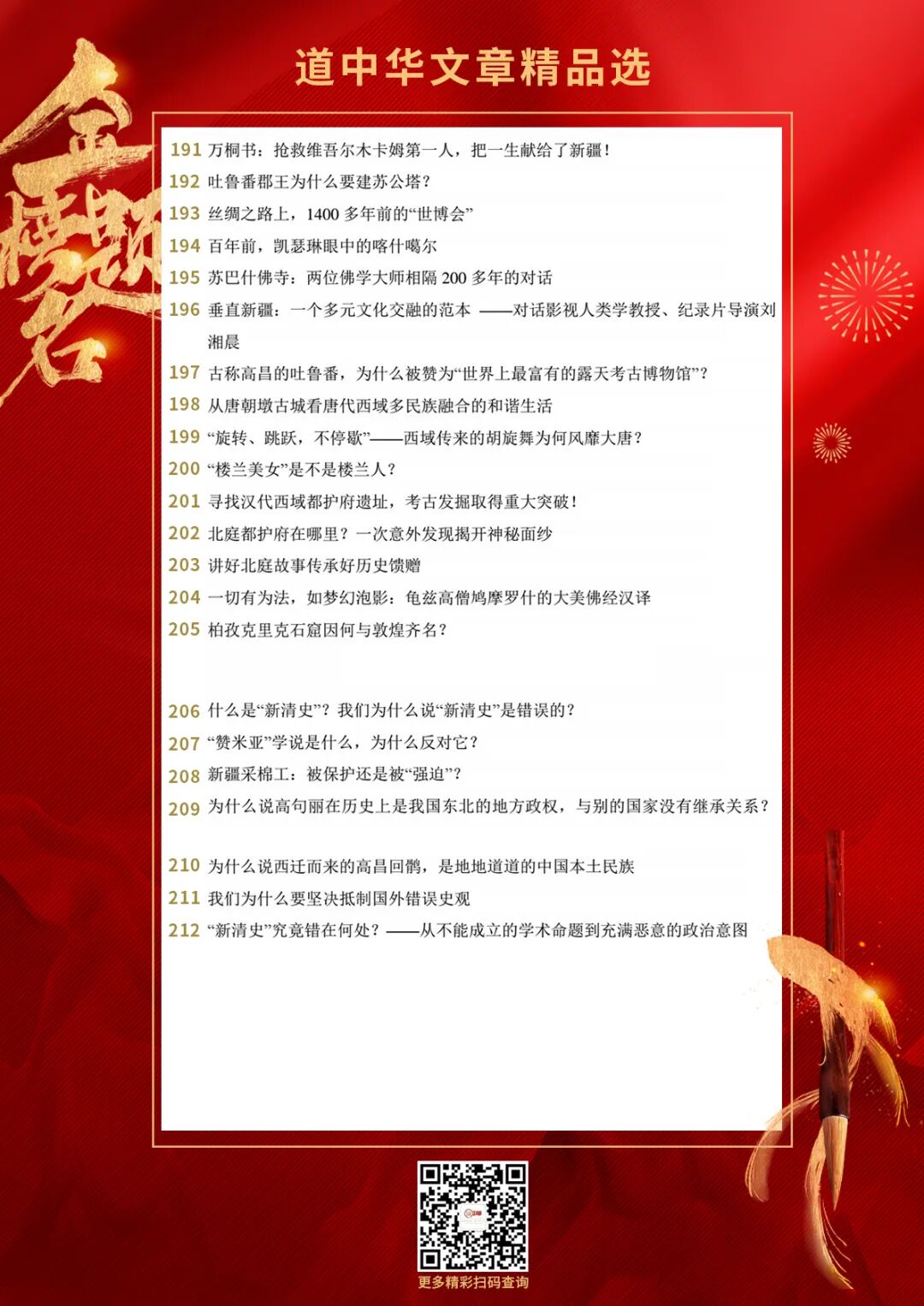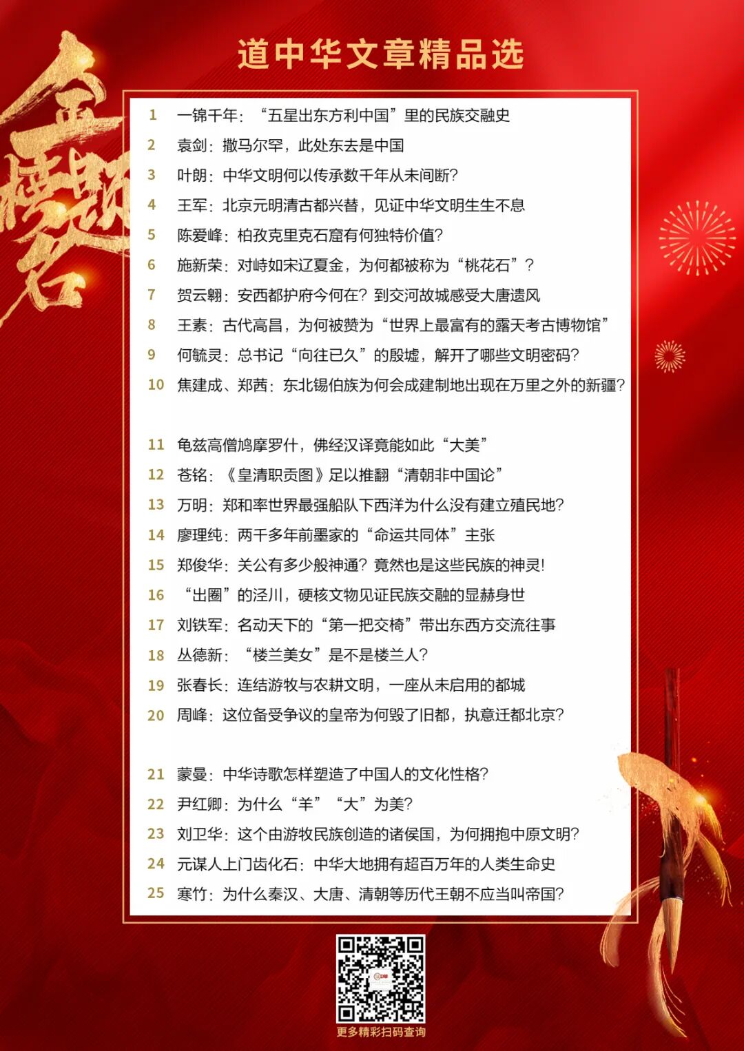 摘句:在2023年文化传承发展座谈会上,习近平总书记全面系统深刻揭示出中华文明具有突出的连续性、突出的创新性、突出的统一性、突出的包容性、突出的和平性。这是对团结统一的中华民族发展主流的深刻把握,对中华文明主体性的高度历史自觉,对中华大一统历史传统的现代传承,对以中国式现代化推进中华民族共同体建设的重要支撑。
