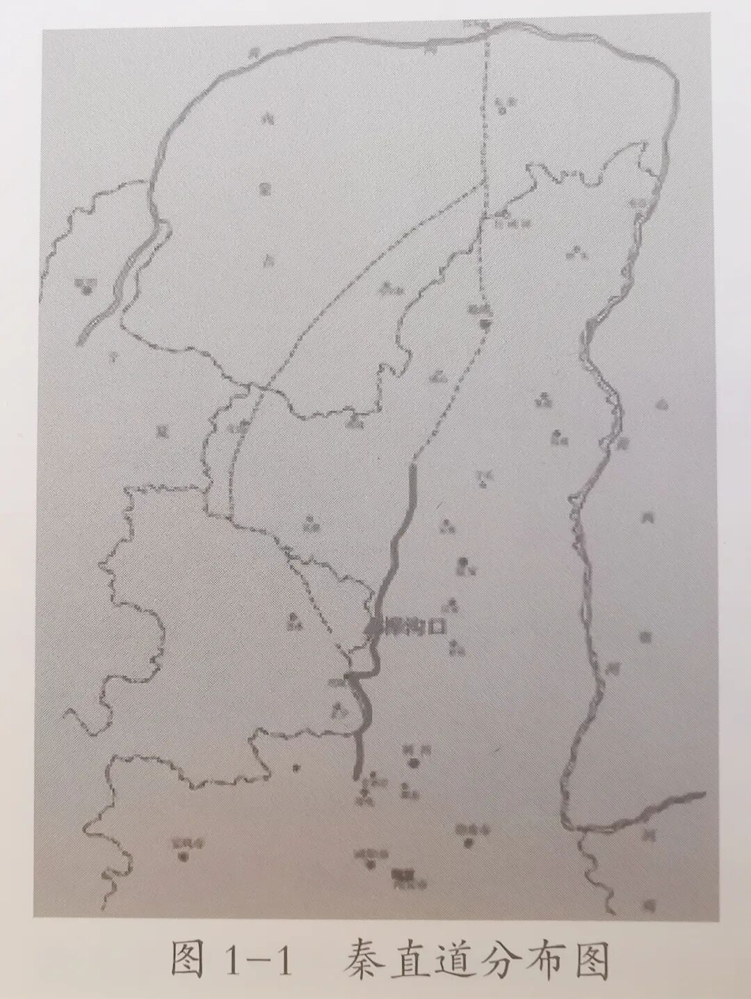 秦直道中段西侧的甘肃宁县、合水、华池等县的子午岭主脉上,也发现了可连成一线的道路遗迹、烽燧及故城,经近年考古发掘证实,是秦直道废弃后,约在东汉初年开辟的一条古道路。(图1-1)