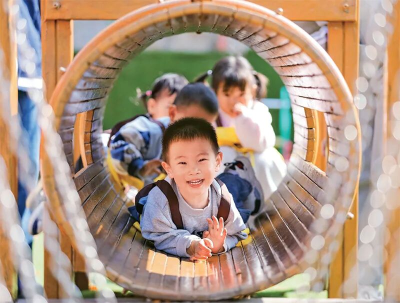 ▲近年来,我国持续加强民生投入,真金白银“投资于人”。2025年上半年,全国31个省区市财政支出中,民生领域支出普遍占到总支出的七成以上。图为2025年11月4日,在山东青岛恒星科技学院恒星托育中心,小朋友在游乐场玩耍。 新华社发 张鹰/摄