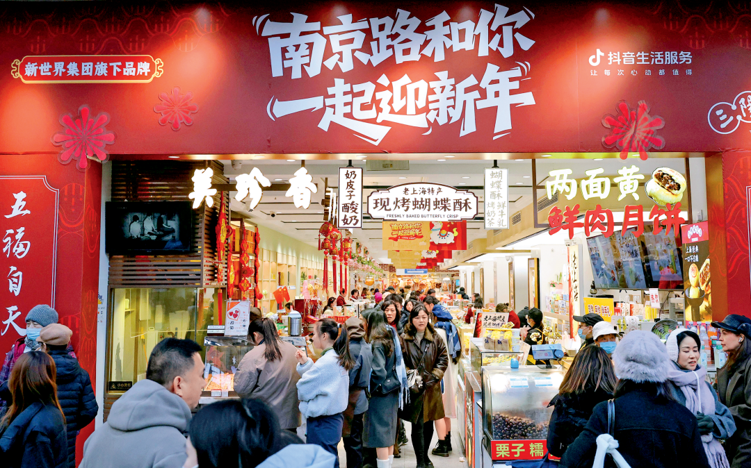 ▲1月3日,2026“购在中国”暨新春消费季启动仪式在上海举行。图为市民游客在上海南京东路步行街上一家传统食品销售商店内选购。 新华社记者 方喆 摄